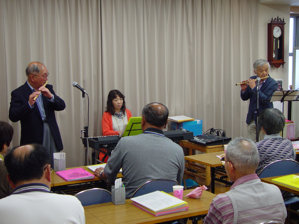 小泉サロン(東広島市西条本町) 広島県東広島市西条本町11−18 中国新聞西条販売所2F お問い合わせ 090-6402-1236(倉本) 中国新聞西条販売所の2階です 小泉サロン入り口 まずは発声練習 篠笛をご堪能ください 時折デュエットをお楽しみ下さい 後半はリクエストタイムです お仲間同士でもどうぞ! 懐かしい曲を皆さんで ナビゲーターはこの二人です 写真をクリックしたら拡大画像が見れます。